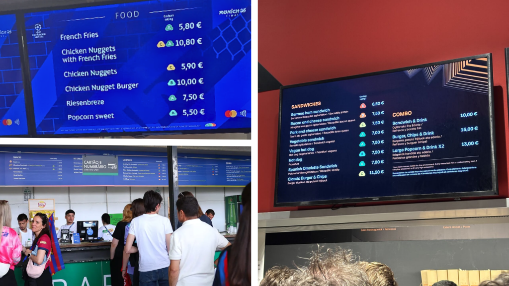 In 2024, UEFA and Just Eat piloted carbon labelling with My Emissions at the Champions League Final at Wembley (read our 2024 case study here). Following the successful pilot, Just Eat and UEFA wanted to scale carbon labelling across as many venues, caterers and competitions as possible.